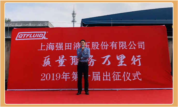 10月21日,上海強田液壓第一屆“質(zhì)量服務(wù)萬里行”出征儀式在公司廠區(qū)隆重舉行。公司董事長,副總等領(lǐng)導(dǎo)高度重視,并列席參加,質(zhì)量部、研發(fā)部、銷售部、計劃部、應(yīng)用部、人事行政部等各部門負責(zé)人及廠區(qū)員工一同參加了本次出征儀式。