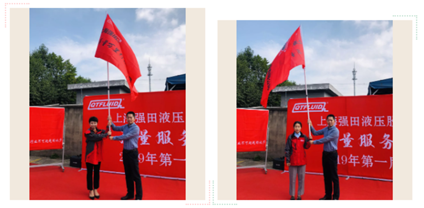 本次“質(zhì)量服務(wù)萬里行”活動由質(zhì)量、技術(shù)、售后、制造等各部門人員組成5個服務(wù)小組。主要旨在幫助市場一線客戶使用終端、各服務(wù)站、客戶主機廠解決問題,收集客戶關(guān)于產(chǎn)品質(zhì)量,產(chǎn)品改善提出的建議,夯實強田產(chǎn)品質(zhì)量,為客戶提供全方位的服務(wù),真正的做到讓客戶放心,安心。出征儀式上,5支服務(wù)小組的組長鄭重的從田云濤董事長手中接過“2019年強田質(zhì)量服務(wù)萬里行”的大旗,并向全體參會人員宣誓,堅決以最好的服務(wù)和高質(zhì)量的品質(zhì)去助力客戶,開啟強田服務(wù)的精彩華章。